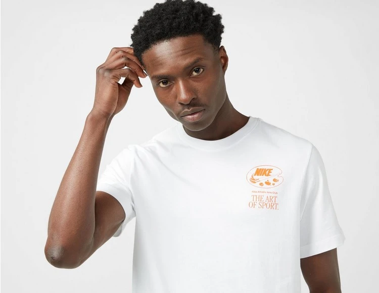 - Feiern Sie die Kunst des Sports mit diesem neuesten Nike-T-Shirt, das ein sauberes und frisches Design mit weichem Baumwollmaterial bietet. Mit einer farbenfrohen Grafik auf der Rückseite und einem weiteren kleineren Aufdruck auf der Brust ist dies ein unverzichtbares Kleidungsstück für jeden Tag. | Unser Model ist 6’2″ groß und trägt Größe M