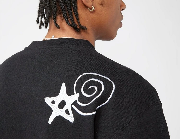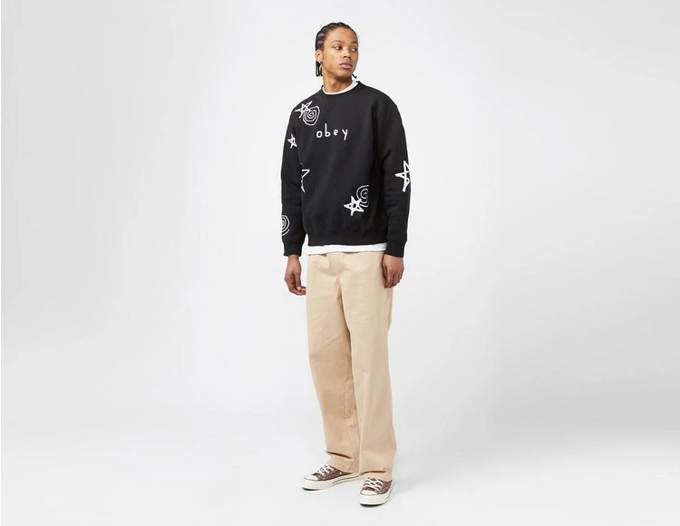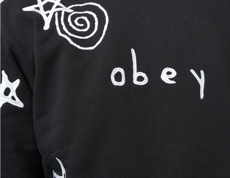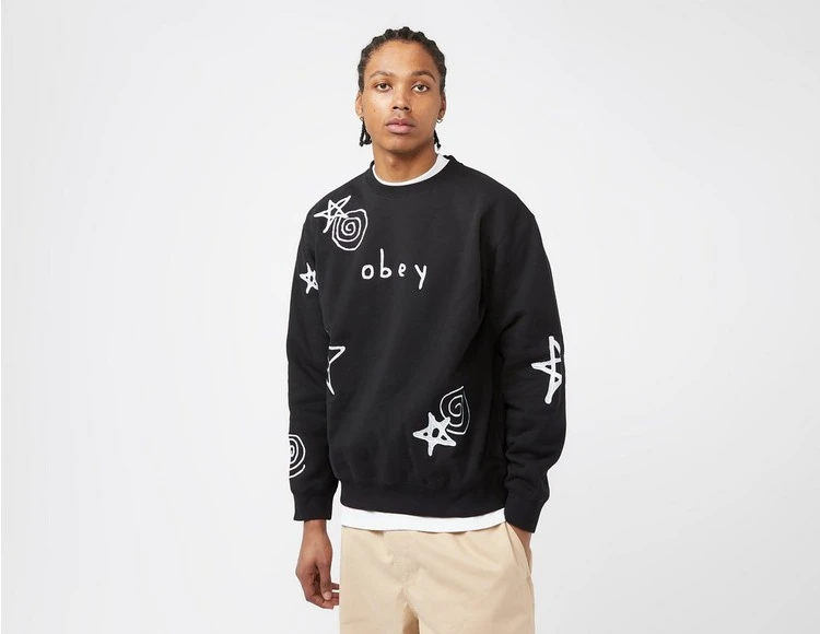 - Das Gazin Crew in Black von Obey ist ein gemütliches, kastig geschnittenes Sweatshirt aus einer Baumwollmischung, das mit gestickten Sternen, Wirbeln und einem Logo auf der Brust verziert ist. 58 % Baumwolle/42 % Polyester.